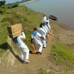 In November 2007 in connection with birthday of Sri Sathya Sai Baba volunteers took a Food distribution programme called “Amrit Kalasam” (supply of cooking food items) and with this a healthy relationship developed with this village for the very first time. Volunteers assembled in district Sathya Sai center and made Gift packages containing various food items and then next day early morning workers with packets reached river side by cars and motorbikes. Then proceed to village by boat and goods batch by batch and distributed the packets. This food package supply was continued in 2008 also.