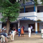 Road cleaning activity by the sevadal of the Dolgobindapur samithi at Koma High School. They are performing this activity with dedication & cheerfulness.