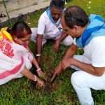 The sevadals of Sri Sathya Sai Seva Samithi, Karimganj have carried out a Cleanliness drive at 7:00 AM in the front-areas of Anukul Sagar, Karimganj which was followed by three times chanting of Omkaram and Sai Gayatri Mantra at 11 AM followed by a short explanation of the meaning of Swachata Se Divyata by Sri Siba Sankar Dutta, District Vice-President, Karimganj and Hailakandi. Before starting the rally, there was a small press meet where Sri Sanjay Paul Choudhury, District President, Karimganj and Hailakandi shared the entire program and also explained the significance of this celebration. Thereafter, a rally started from the venue of Eashwarmma Yoga Coaching Centre, Karimganj with the students of Sri Sathya Sai Balvikas Centre, Karimganj and the students of Eashwarmma Yoga Coaching Centre, Karimganj along with their parents accompanied by devotees, sevadals, youths and office bearers of our organisation and students of local schools and university, teaching staffs, etc. In the middle of the rally, there was a small cultural and awareness program at Sambhu Sagar Park, Karimganj where the Yoga students presented some of the postures of yoga lead by their trainer and the Balvikas students sang two Sai Bhajans along with their Balvikas Guru and instrument players. Some sort of Awareness and Cleaning Program were also done at the Park premises. The rally then continued and ended after reaching at Eashwarmma Yoga Coaching Centre, Karimganj. Along with the sevadals, local youths and parents distributed 56 small plants to all the Balvikas as well as Yoga students which are to be planted in their own houses. Awareness was also provided to the B.V. and Yoga students regarding the significance of tree plantation and also explained the reason for which Plastics should not be used. The sevadals distributed water bottles and chocolates during the rally and other Prasadam at the end of the program. Thereafter, the sevadals along with senior devotees went to Bipin Paul Vidyaniketan, Karimganj to plant 4 Neem Trees. The Omni-P