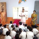 Distributing carry bags made by cloths to the students and gave Swami’s massage of Swachhata se Divyata Tak.