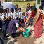 Explained the importance of clean atmosphere, reasons to stop usage of single use plastic, polythene bags, health and hygiene to the school children and school staff and demonstration of the correct way of washing hands.